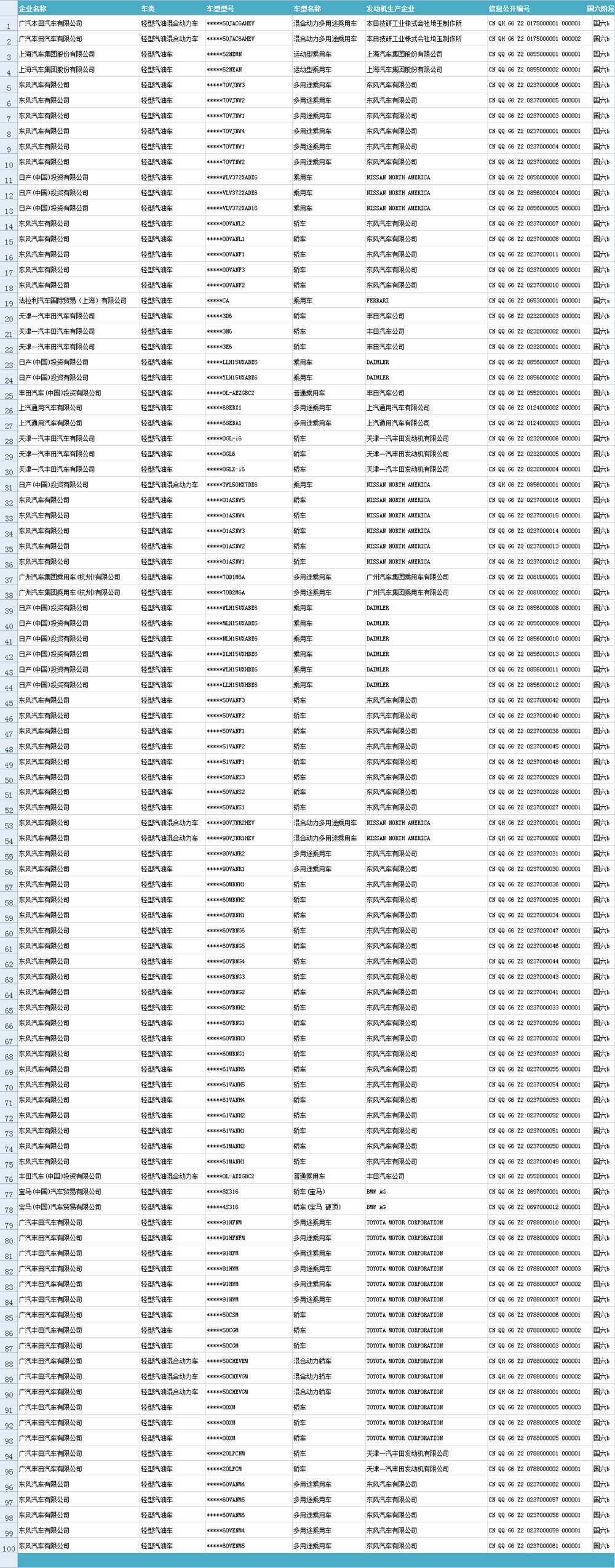 輕型車:共有412家企業(yè)9903個車型(47805個信息公開編號)40148632輛車進行了輕型車國六環(huán)保信息公開,與上周匯總環(huán)比增加57個車型、403772輛車(符合6b階段限值的車型占比96.5%、符合6b階段限值的車輛占比96.7%)。其中,國內(nèi)生產(chǎn)企業(yè)385家、9043個車型、38250000輛,國外生產(chǎn)企業(yè)28家、860個車型、1898632輛;輕型汽油車企業(yè)398家、8847個車型、38267673輛,輕型混合動力車企業(yè)51家、319個車型、1418352輛,輕型柴油車企業(yè)62家、525個車型、392296輛,輕型燃氣車企業(yè)13家、207個車型、46042輛,輕型兩用燃料車企業(yè)3家、3個車型、24269輛,輕型甲醇單燃料汽車企業(yè)2家、2個車型。